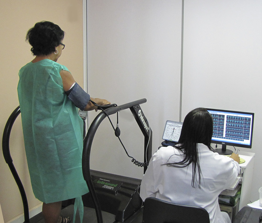 Exame realizado em um esteira rolante, onde um esforço físico gradualmente crescente, para se avaliar doença arterial coronariana ,arritmias, alterações de pressão arterial, capacidade funcional respiratória com isso uma forma segura de prescrever exercícios físicos. Não se deve utilizar bebidas alcoólicas, energéticas ou café antes deste exame. É usar uma roupa de atividade física com top para as mulheres . E utilizar um tênis confortável. Homens devem vir depilados para perfeita fixação dos eletrodos.